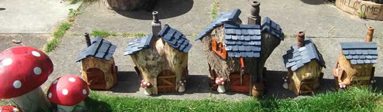 Hand made solid wood ornamental fairy houses and garden follies.
