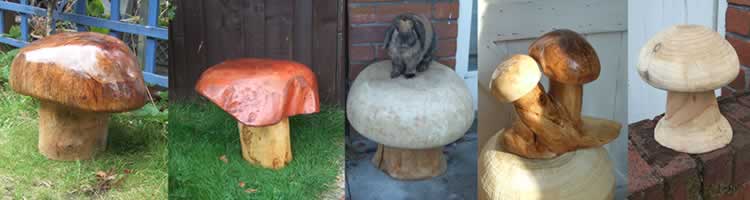 Mushrooms occupy the middle ground between chainsaw carvings and fairy houses. They are a simple shape to cut, and look super-cute with some of the