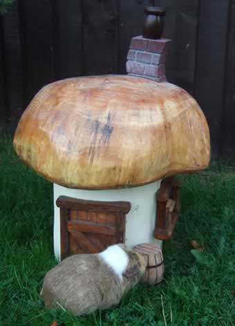 Mushrooms occupy the middle ground between chainsaw carvings and fairy houses. They are a simple shape to cut, and look super-cute with some of the